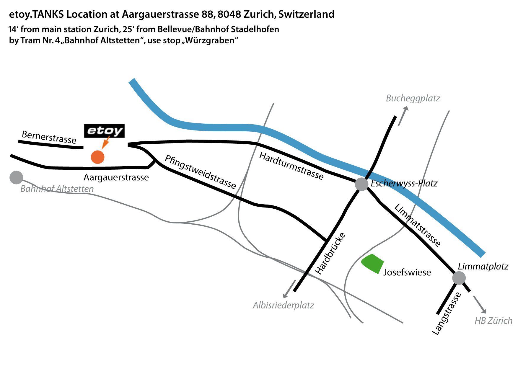 how to reach our etoy.TANKS at Aargauerstrasse 88, 8048 Zurich